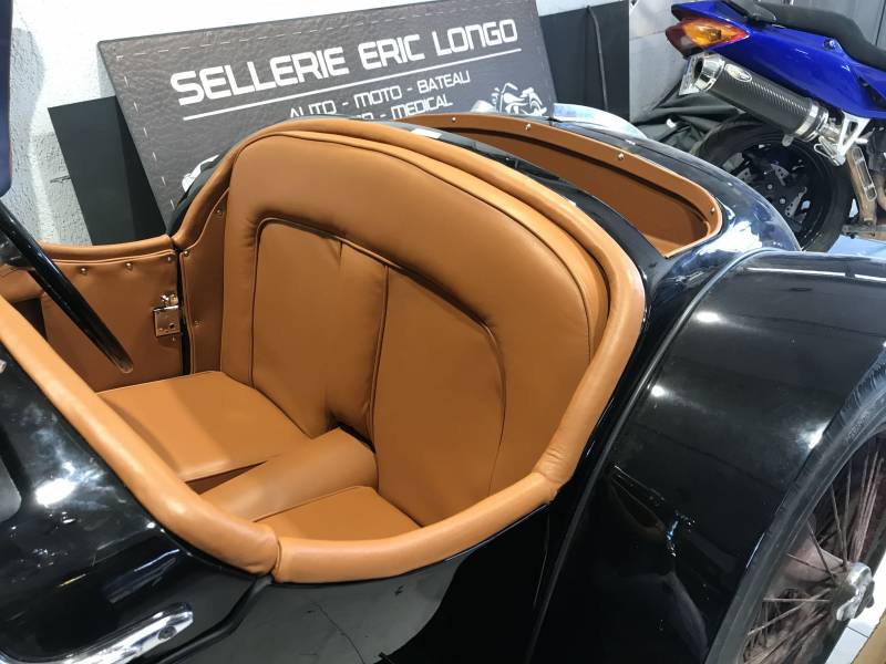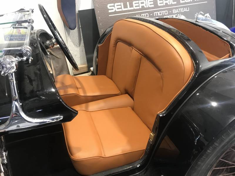 Les sièges ont été refait en Cuir, les panneaux de portes, panneaux latéraux tout en Cuir, et le cache poussière trape à essence.