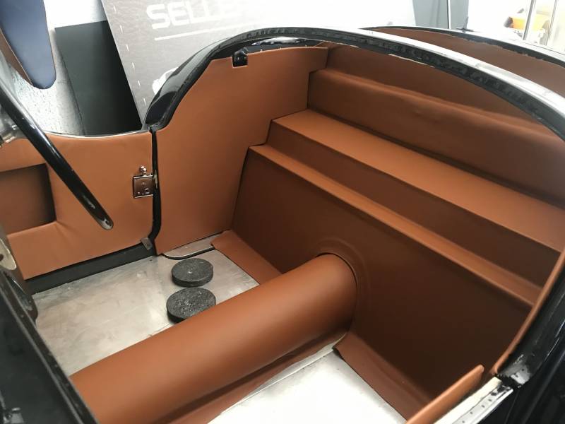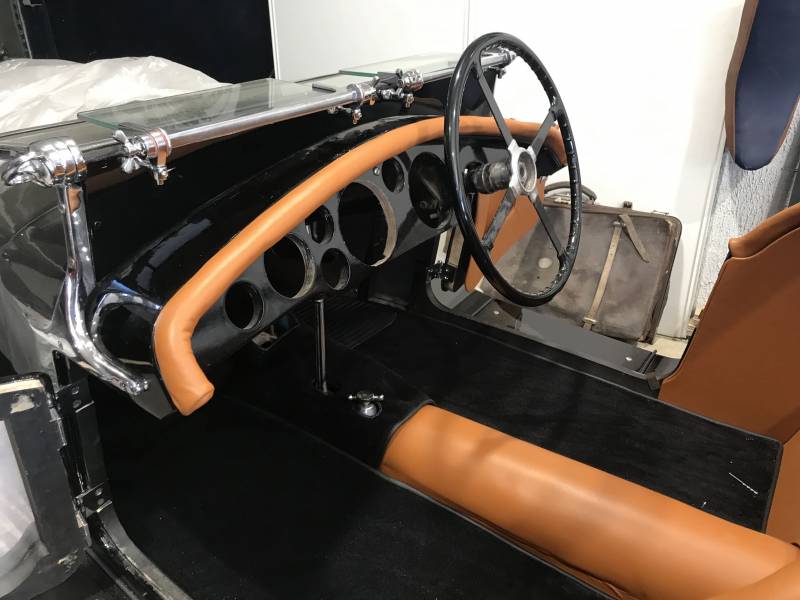 Prochaine étape, à son retour d'Angleterre, la Riley reviendra dans mon atelier pour confectionner sa capote sur mesure en toile Alpaga noire.