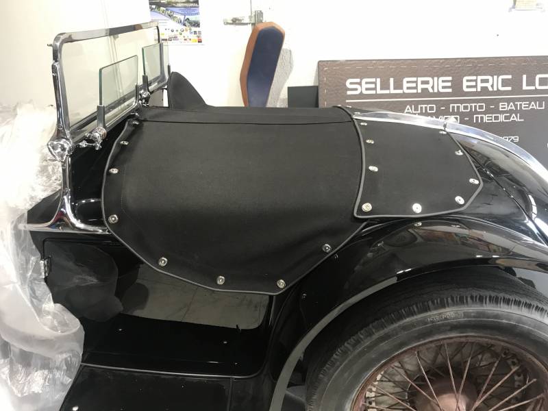 Le Cover tonneau et le couvre capote, ont été eux aussi fais sur mesure en toile capote Alpaga noire.